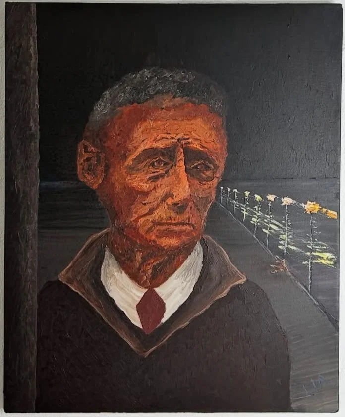 Through my paintings, I explore the human condition in a changing world. Using somber tones and solitary figures, I create melancholic yet mesmerizing atmospheres, blending realism with surreal and symbolic elements.